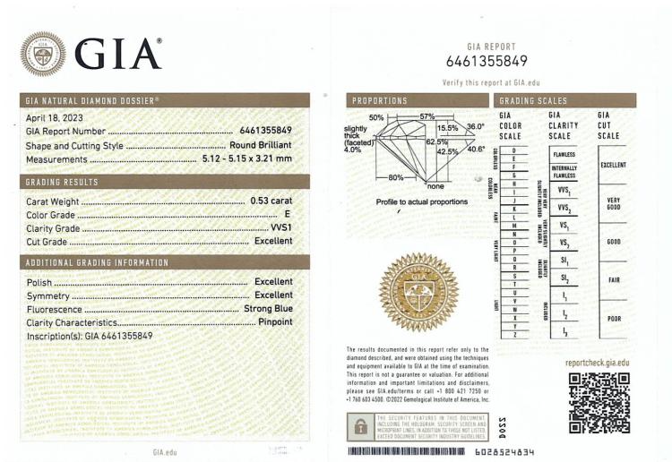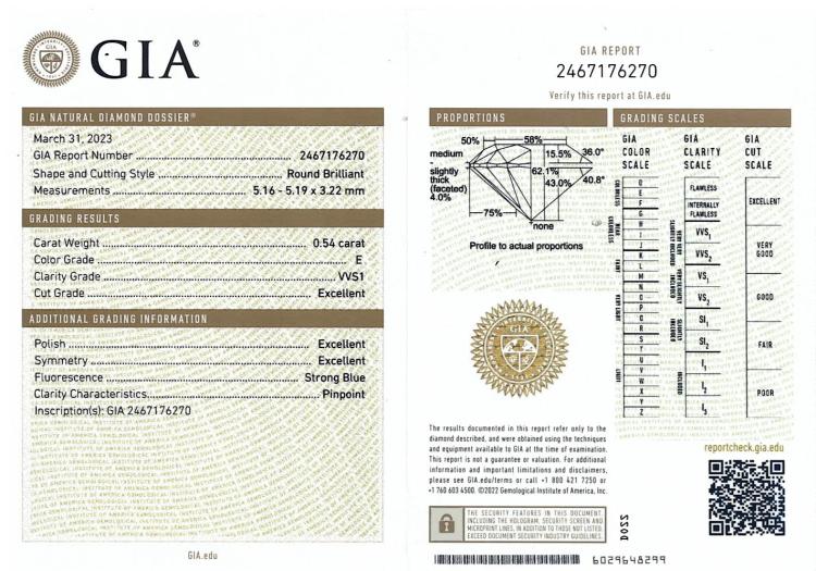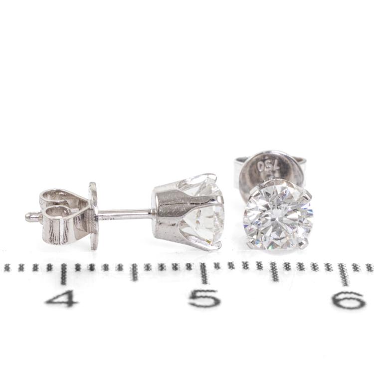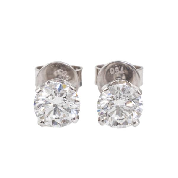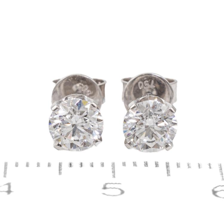 Diamond stud earrings with 2 round brilliant cut natural Diamonds totalling 1.07ct (with GIA Summary Reports graded as E VVS1 #6461355849, 2467176270). 18ct white gold. Weight: 1.5g. (New)