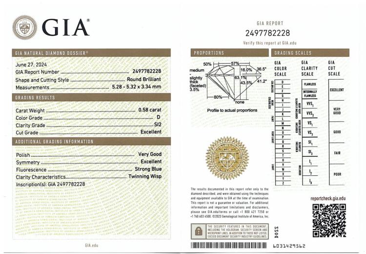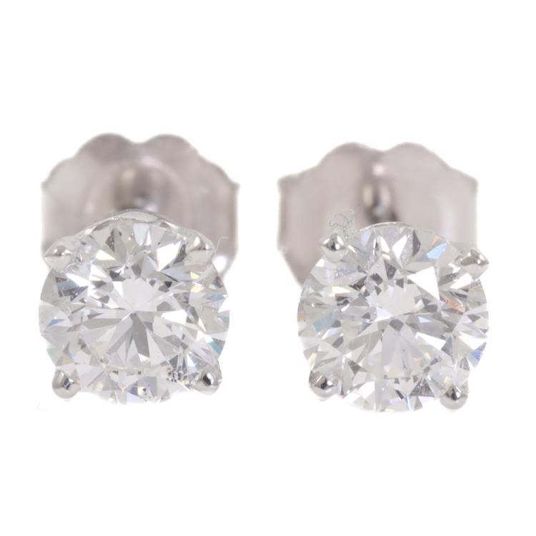 Diamond stud earrings with 2 round brilliant cut Natural Diamonds totalling 1.15ct (with GIA Summary Reports graded as D SI2 #5496821628, 2497782228). 18ct white gold. Weight: 1.2g. (New)