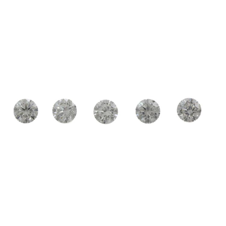 A loose parcel of 5 round brilliant cut natural Diamonds totalling 1.17ct (Estimated grading: I-J SI). Approximate size: 3.9mm - 3.95mm. (As New)