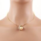 Pearl and Diamond pendant with Golden South Sea Pearl of 12.8mm and round Natural Diamonds totalling 0.60ct (Estimated grading: H-I SI). 18ct yellow gold with 40cm 18ct yellow gold Omega chain. Weight: 13.7g. (Pre-owned)