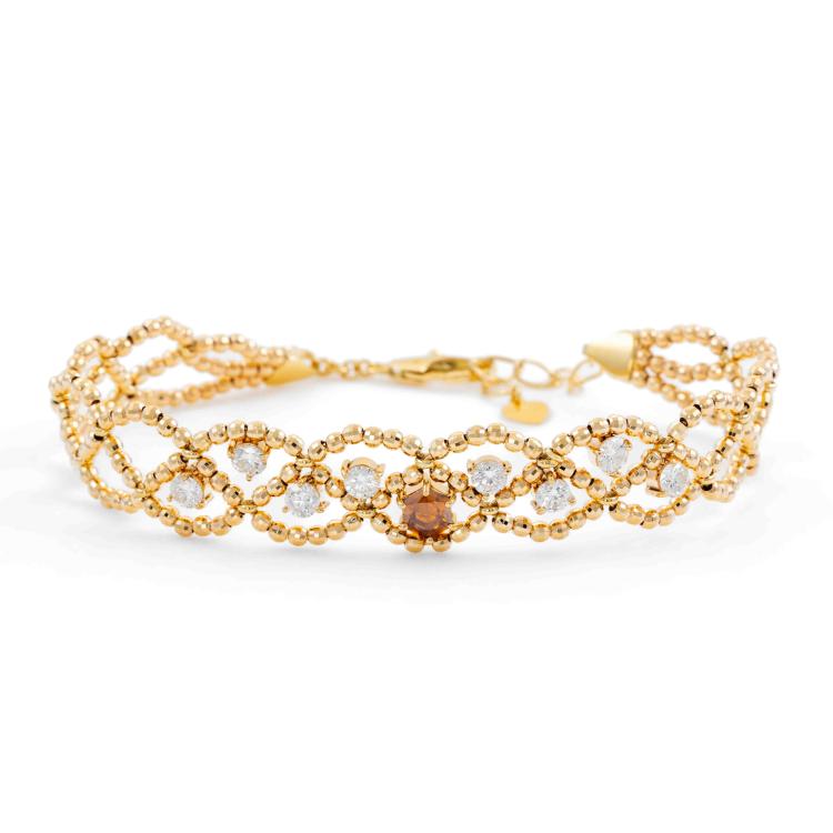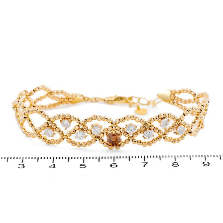 Diamond Bracelet with octagonal cut natural Fancy Diamond of 0.41ct (Estimated grading: Orangy brown P1) and 8 round Natural Diamonds totalling 1.07ct (Estimated Grading: G-H SI). 18ct yellow gold. Length: 17.0cm - max 19.0cm. Weight: 9.1g. (Pre-owned)