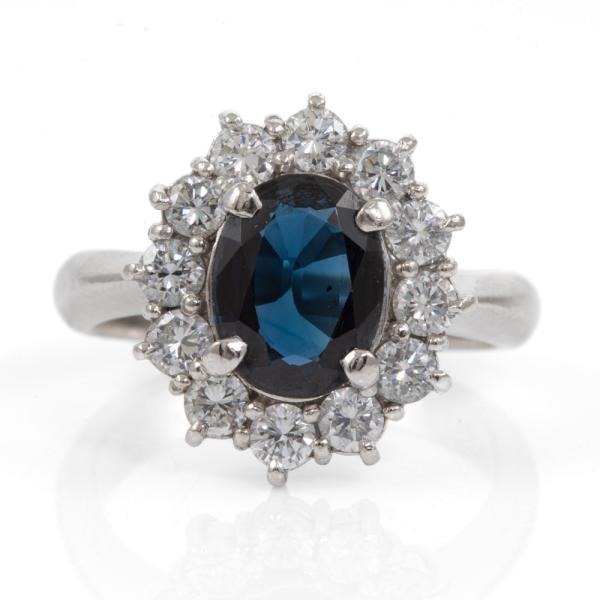 1.58ct Blue Sapphire and Diamond Ring