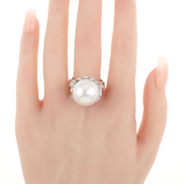 16.5mm South Sea Pearl & Diamond Ring