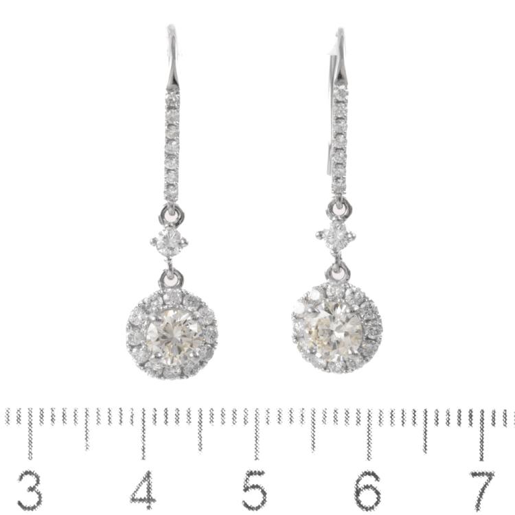 Diamond shepherd hook drop earrings with round Natural Diamonds totalling 1.70ct. (Estimated grading: J VS-SI2 & G VS) Platinum-900. Weight: 4.7g ( Pre-owned)