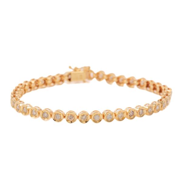 Diamond Tennis bracelet with round Natural Diamonds totalling 2.00ct (Estimated grading: H-I SI). 18ct yellow gold. Length: 18cm. Weight: 9.8g. (Pre-owned)