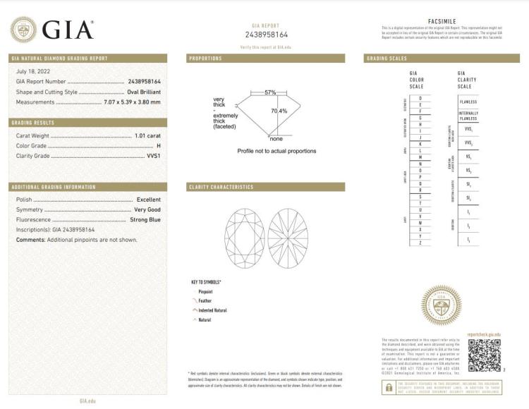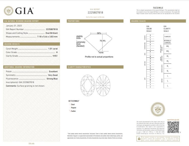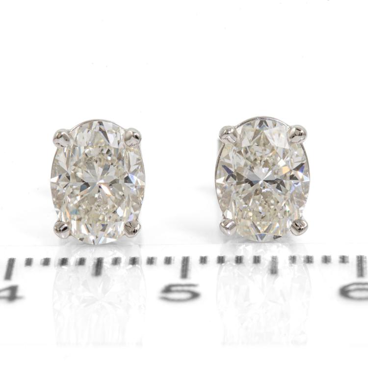 Diamond Studs with 2 oval shape Natural Diamonds totalling 2.02ct (both with GIA reports graded as H VVS1 #2225807818, 2438958164). 18ct white gold. Weight 2.8g. (New)