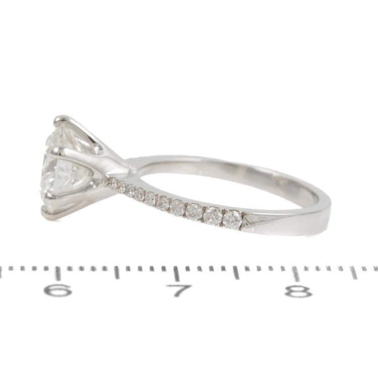 Diamond solitaire ring with a round brilliant cut natural Diamond of 2.07ct (with IGI Report graded as G SI2 #464183602) and shoulder round Diamonds totalling approximately 0.20ct. 18ct white gold. Ring size K. Band width: 2.2mm - 1.2mm. Weight: 3.3g. With Valuation Certificate dated 15/06/2021. (Pre-owned)