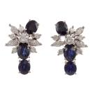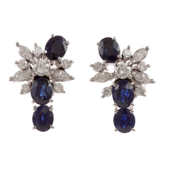 Sapphire & Diamond screwback earrings (for non pierced ears) with oval shape Natural blue Sapphires totalling 3.00ct & round & marquise cut Natural Diamonds totalling 0.80ct (Estimated grading: H VS-SI). Platinum 900 (XRF tested, stamped Pt). Total Weight: 7.1g. (Pre-owned)