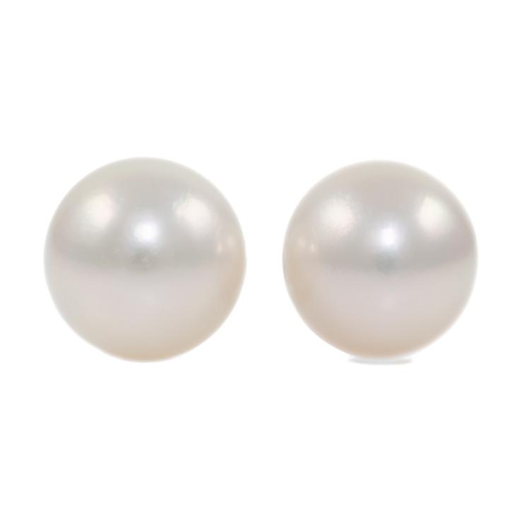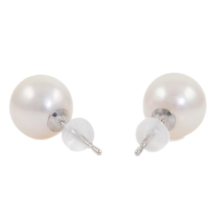 Pearl stud earrings with Akoya Pearls of 9mm - 9.1mm. 14ct white gold with silicon backs. Weight: 2.5g. (New)