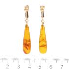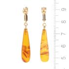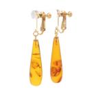 Amber drop screwback earrings with natural teardrop shape Ambers of size 7.7 x 26.0mm. 18ct yellow gold. Earrings length: 4.2cm. Weight: 3.3g. (Pre-owned)