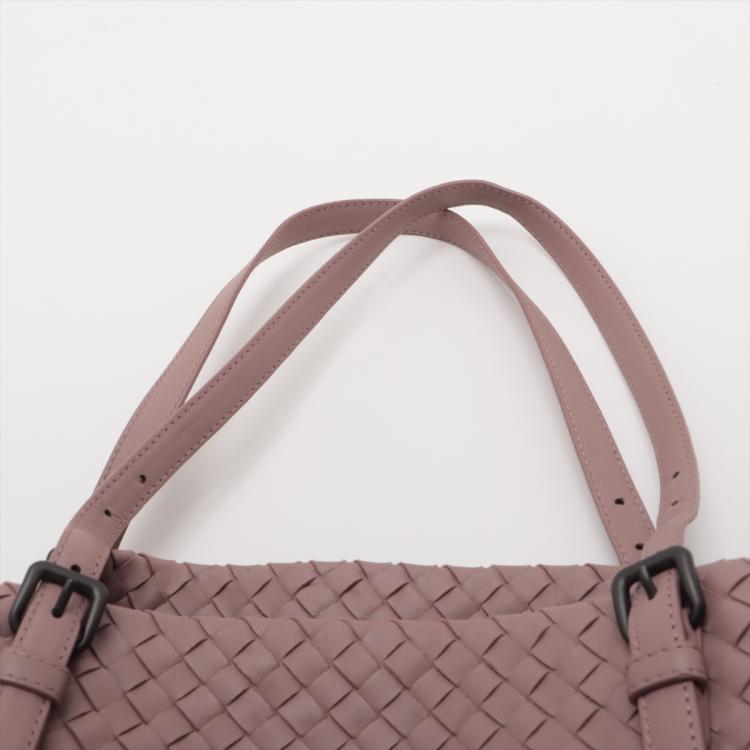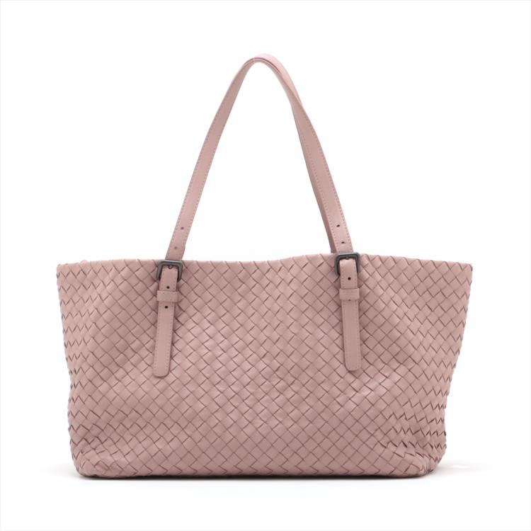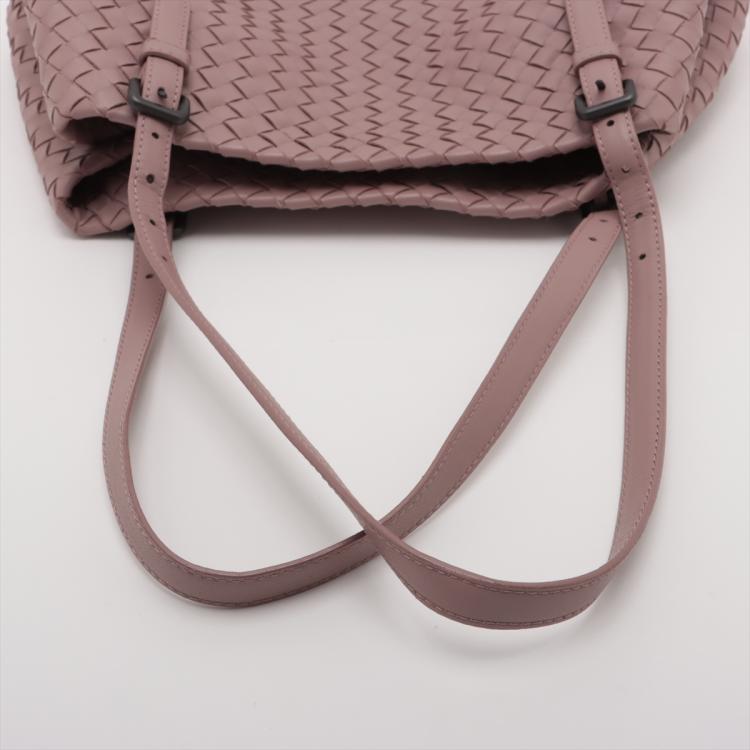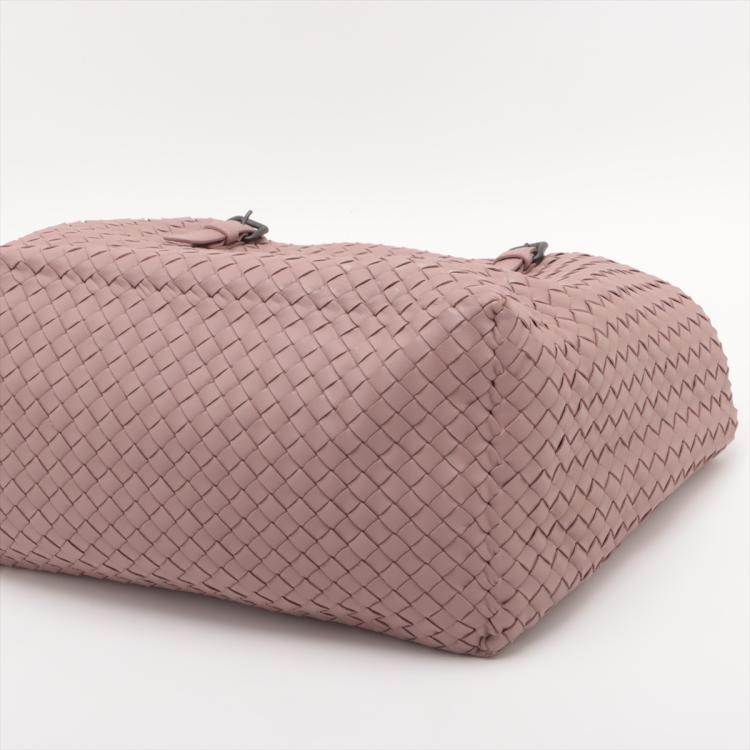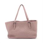 Bottega Veneta medium Cesta tote bag in light pink Intrecciato woven leather. Featuring matte black hardware, and double flat adjustable leather top handles. The open top opens to a beige suede-like lining interior with a zipper and patch pockets. Approximate dimensions: 32.5cm(L) x 22cm(H) x 18cm(D), handle drop 24cm. Accompanied by Bottega Veneta mirror. With Entrupy Certificate of Authenticity. (Pre-owned)