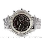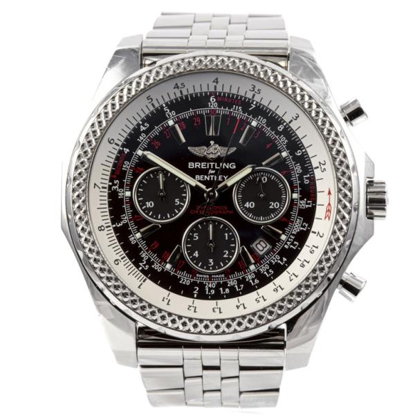 Breitling Bentley Motors Special Edition stainless steel automatic mens watch. Black chronograph dial, date, case diameter: 49mm, wrist size: 18.5cm, Swiss made. Ref# A25362. With Breitling stainless steel bracelet and clasp. With Certificate of Authenticity. 3 month FSA warranty (Pre-owned)