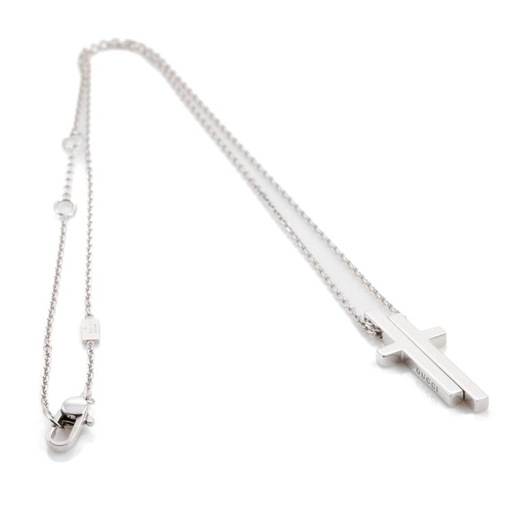 Gucci Separate Cross Pendant. 18ct white gold with max 49cm Gucci 18ct white gold chain. Weight: 9.5g. With Gucci box. (Pre-owned)