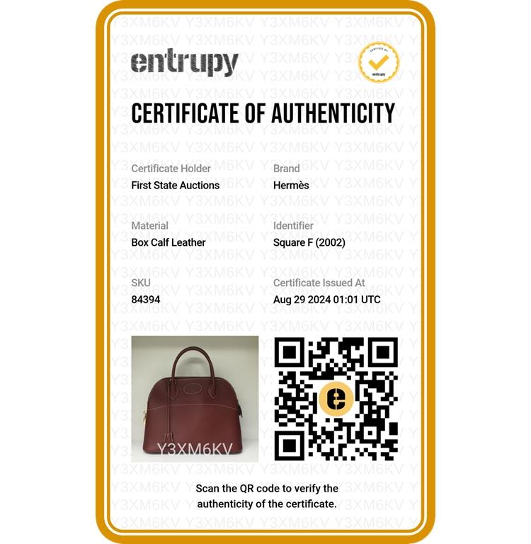 Hermès Bolide 31 handbag in Rouge H Box Calf leather. (square F: 2002). Featuring gold-toned hardware, double top handles, and padlock with two keys inside a clochette. The zipper top opens to a matching dark red smooth leather lining interior with a patch pocket. Approximate dimensions: 31.5cm(L) x 24.5cm(H) x 12.5cm(D), handle drop 10cm. Accompanied by a Hermès dustbag. (NOTE: shoulder strap NOT included.) With Entrupy Certificate of Authenticity. (Pre-owned)