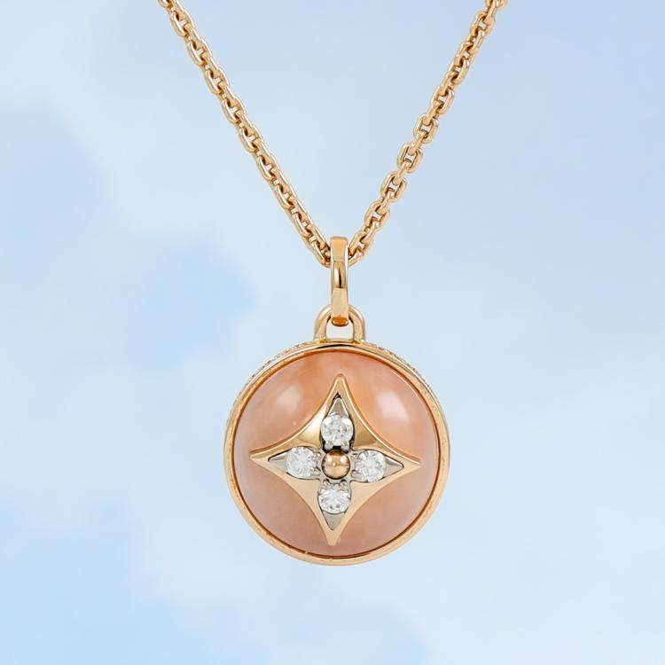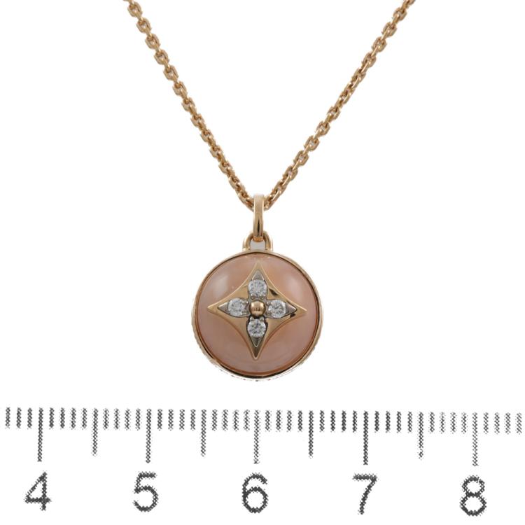 Louis Vuitton Colour Blossom necklace with Pink Opal and round Natural Diamonds totalling 0.10ct. Motif size: 11.5mm. 18ct rose gold with 41cm 18ct rose gold Louis Vuitton chain. Made in France. Weight: 7.3gg. With Louis Vuitton box. With Certificate #419169. (Pre-owned)