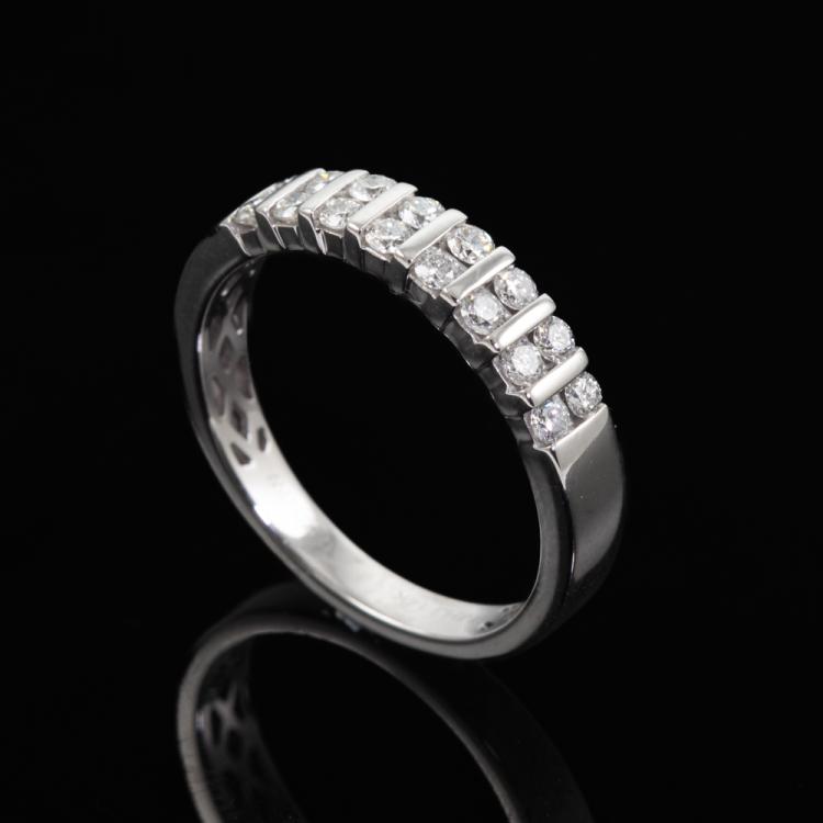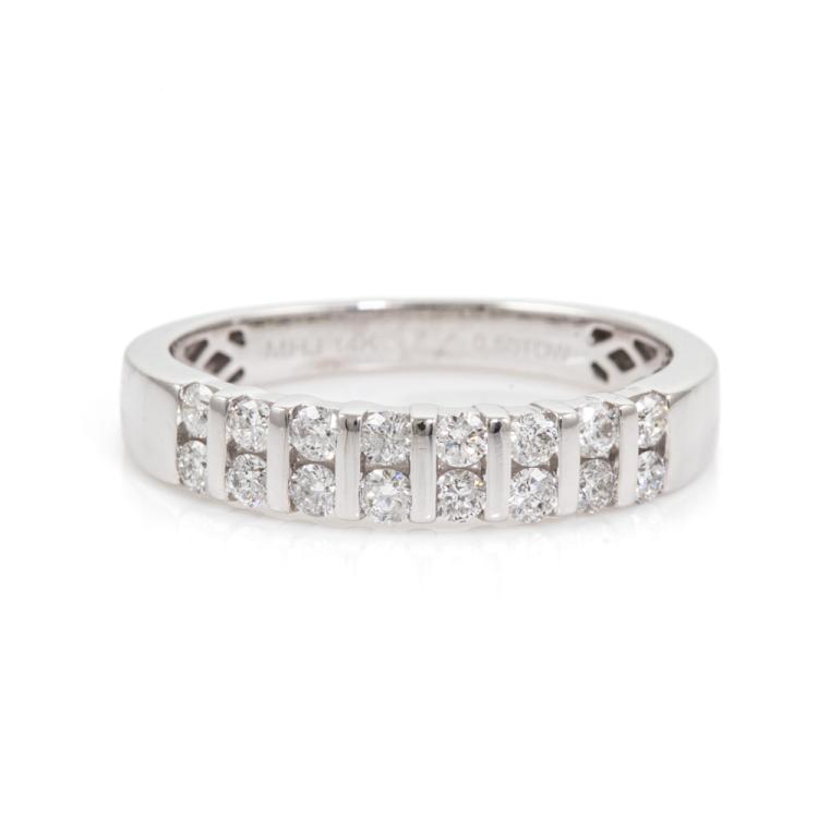 Michael Hill Diamond ring with round Natural Diamonds totalling approximately 0.50ct (Estimated grading H SI). 14ct white gold. Ring size: Q. Band width: 3.6mm - 2.8mm. Weight: 3.7g. (Pre-owned)