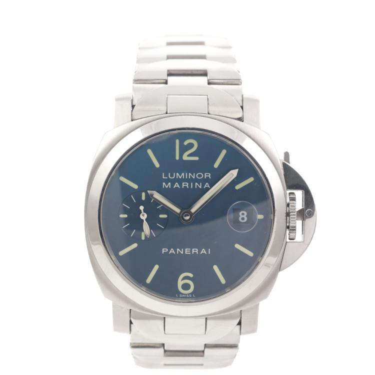 Panerai Luminor Marina stainless steel automatic mens watch. Blue dial, small seconds, date, case diameter: 40mm, wrist size: 18cm, Swiss made. Ref# OP6625. With Panerai stainless steel bracelet and clasp. With Certificate of Authenticity. 3 month FSA warranty (Pre-owned)