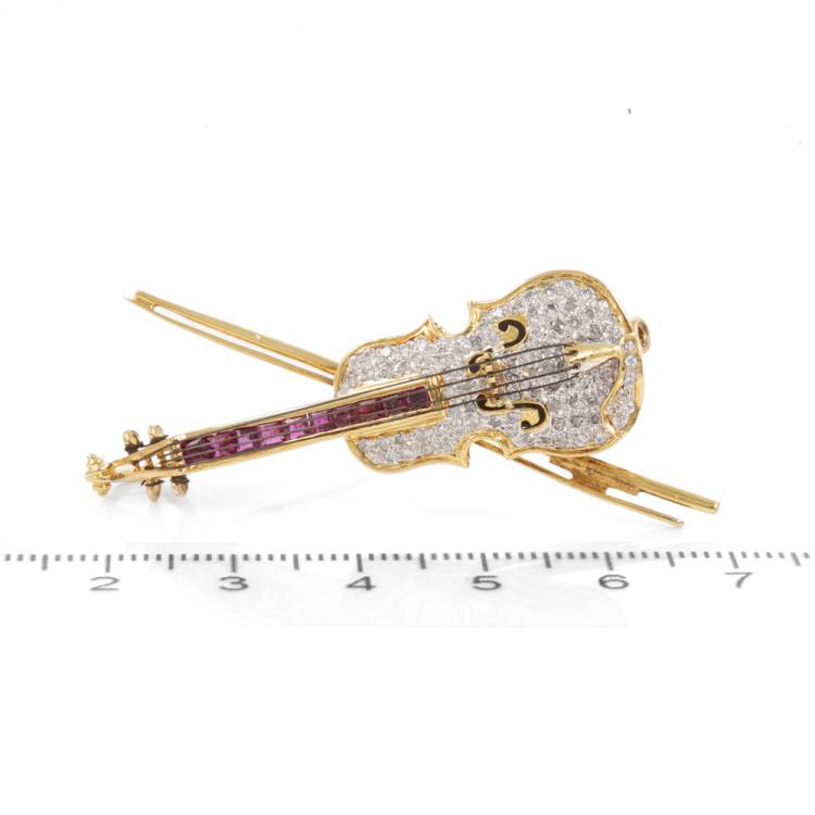 Ruby and Diamond Violin Brooch/Pendant
