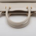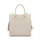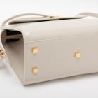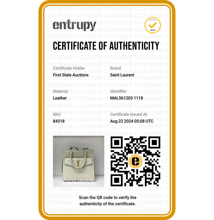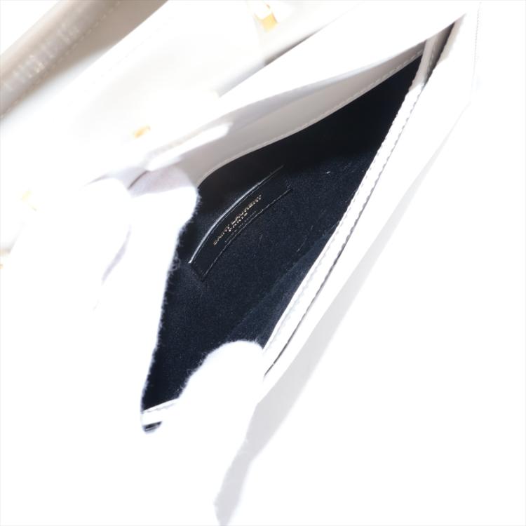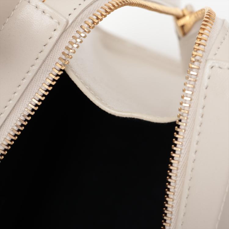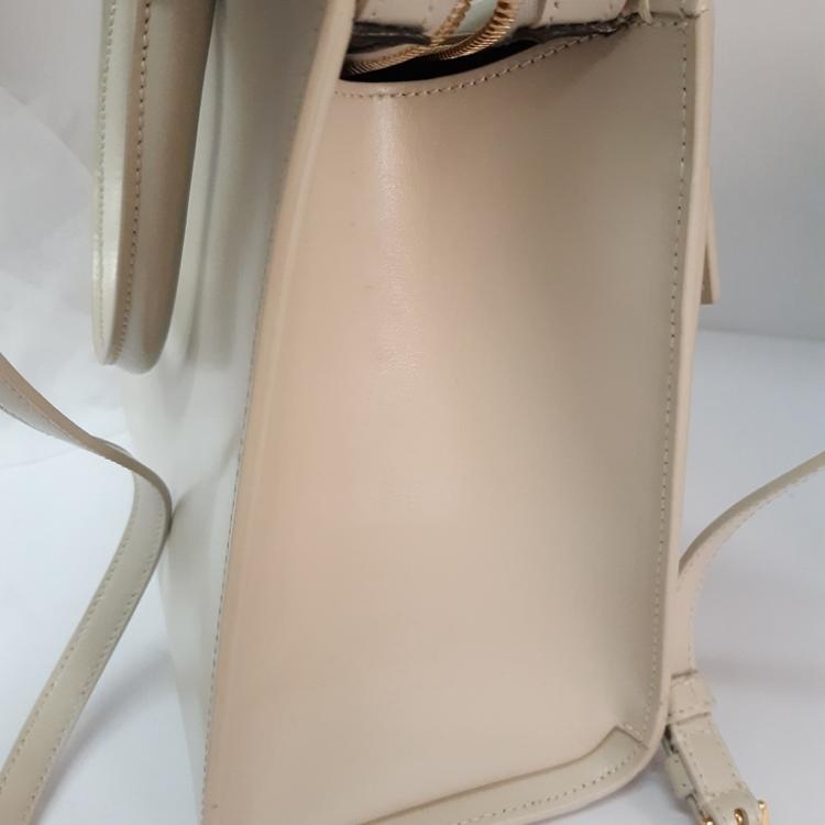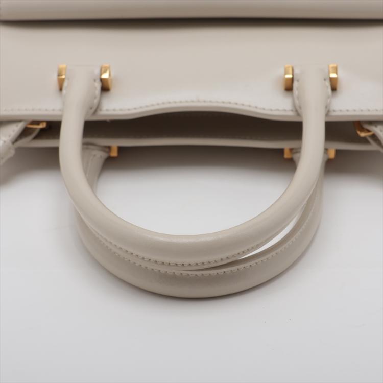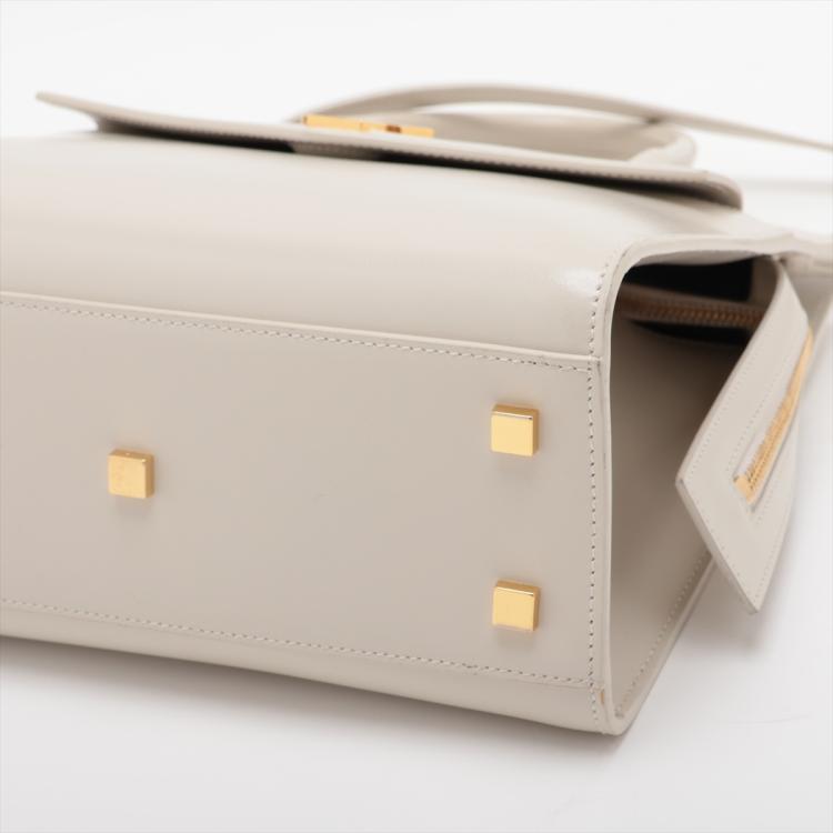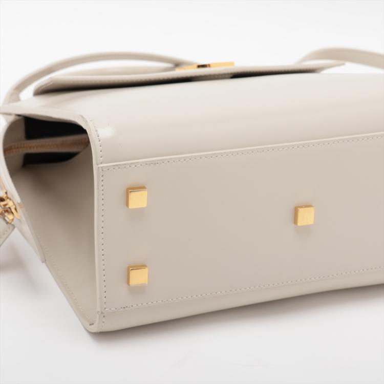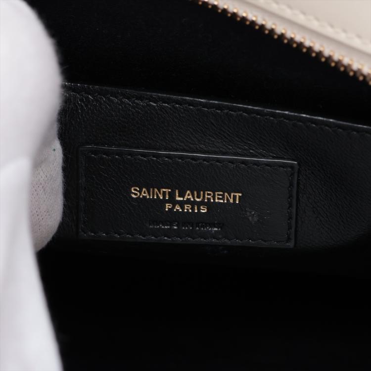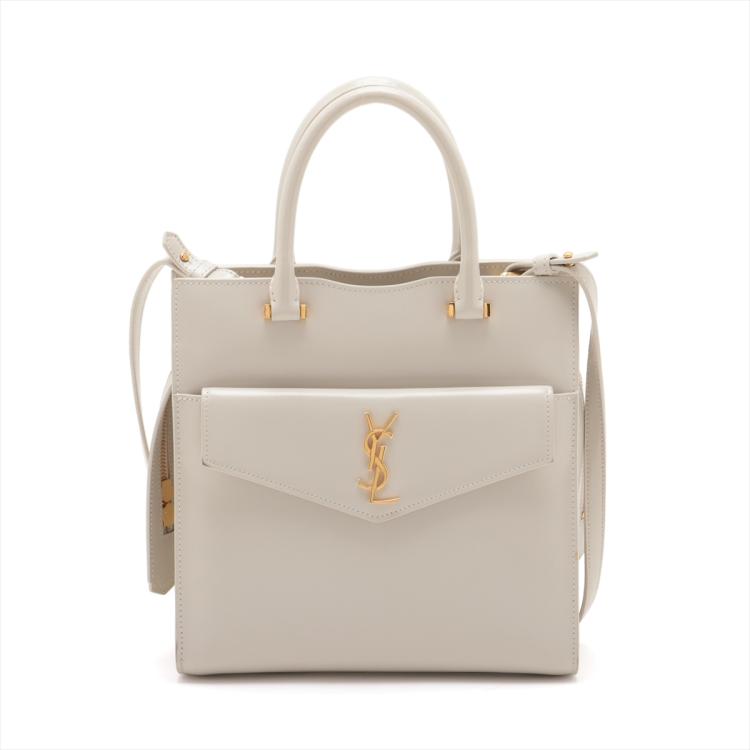 Saint Laurent Paris small Uptown tote in cream white smooth calfskin leather. Featuring gold-toned hardware, rolled leather handles, detachable and adjustable shoulder strap, and a detachable pouch at front pocket. The zipper closure opens to a black textile interior with a patch pocket. Approximate dimensions: 23cm(L) x 22.5cm(H) x 11cm(D), handle drop 10cm, strap drop 57cm. Accompanied by a YSL dustbag. With Entrupy Certificate of Authenticity. (Pre-owned)