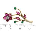 Set of Two Ruby, Emerald, Diamond Brooch