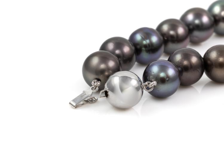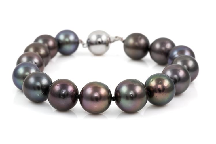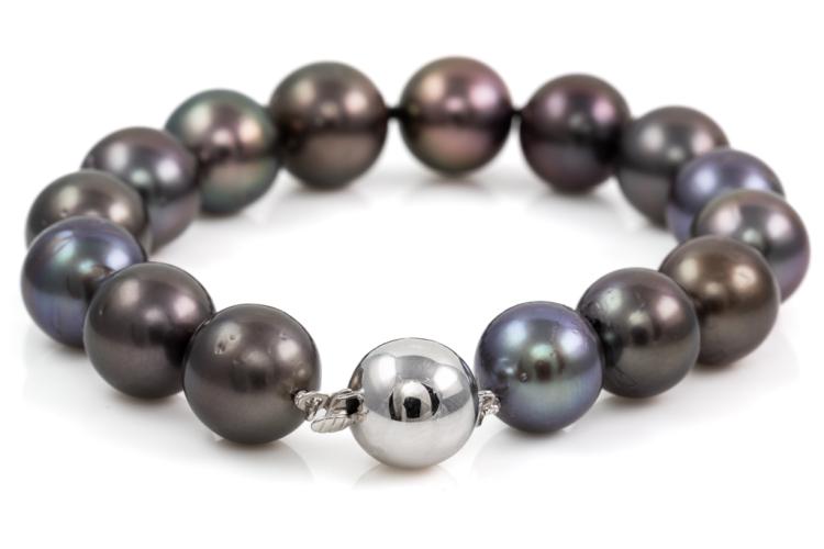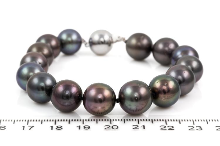 Pearl bracelet with 15 Tahitian Pearls of 11.5mm - 12mm. 14ct white gold 11mm ball clasp. Length: 20cm. Weight: 37.4g. (Pre-owned)