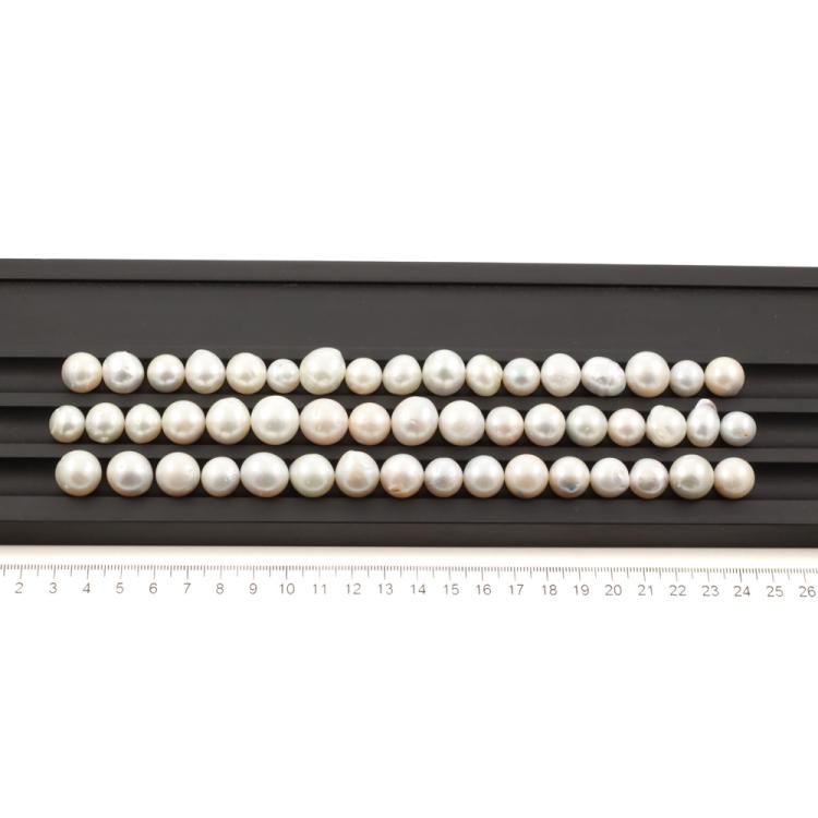 Parcel of 50 mixed loose undrilled South Sea Pearls of 10.4mm - 15.1mm. Weight: 158.3g. (As New)