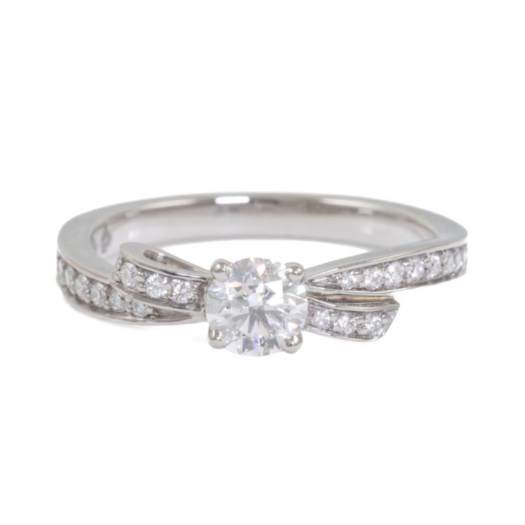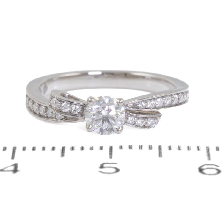 Chanel Ruban ring with a centre round brilliant cut Natural Diamond of 0.30ct (with copy of GIA Diamond Dossier graded as F VVS1 #6322361570) and surrounding round Natural Diamonds totalling approximately 0.26ct. Platinum 950. Chanel stamped size 47, actual ring size H - ring resizing is not recommended. Weight: 3.4g. With Chanel Pouch. (Pre-owned)
