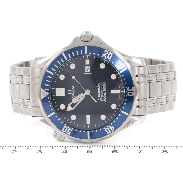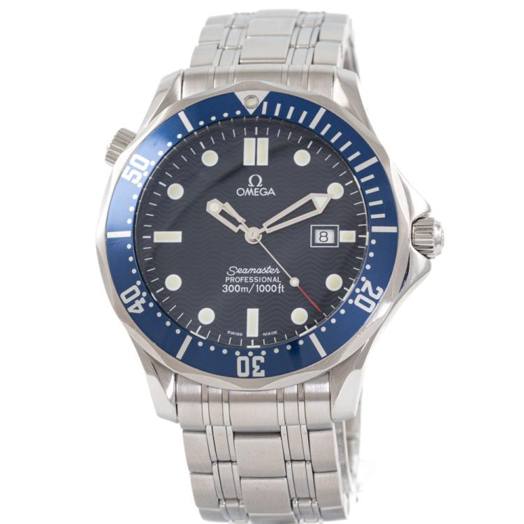 Omega Seamaster stainless steel quartz mens watch. Blue dial, date, case diameter: 41mm, wrist size: 19cm, Swiss made. Ref# 2541.80.00. With Omega stainless steel bracelet and clasp. With Omega stainless steel bracelet and clasp. With Omega stainless steel bracelet and clasp. With certificate of authenticity and Omega case. 3 month FSA warranty. (Pre-owned)