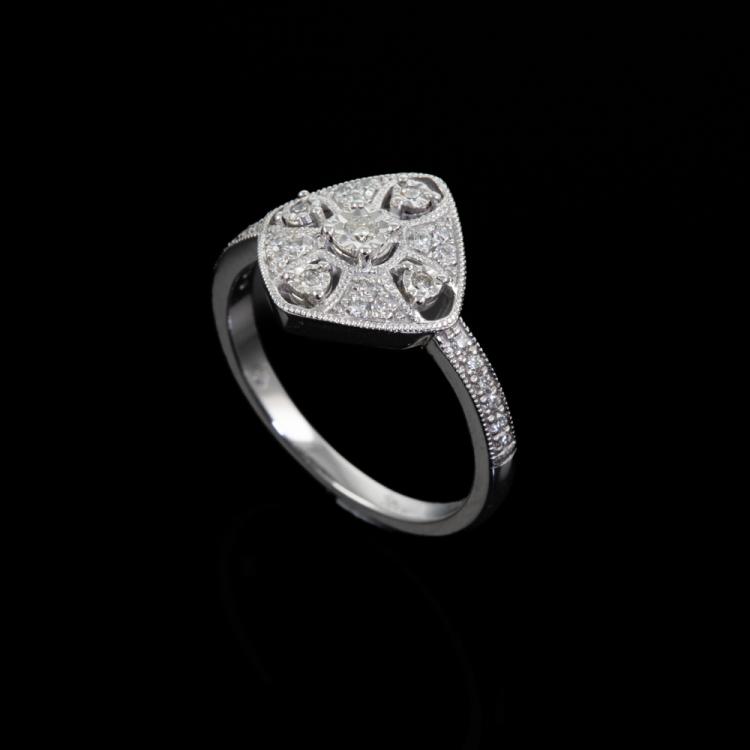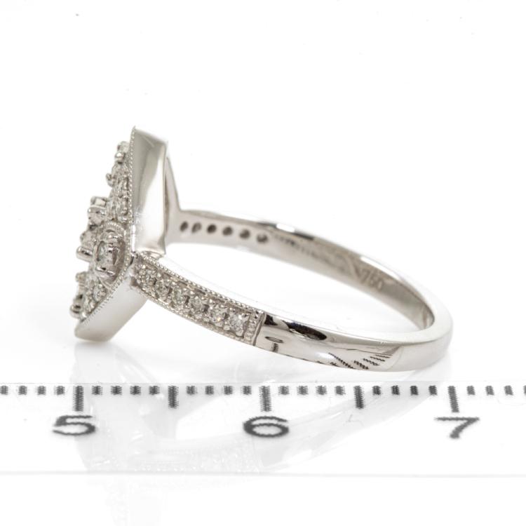 Diamond dress ring with round Natural Diamonds totalling 0.25ct. 18ct white gold. Ring size: N1/2. Band width: 1.7mm. Weight: 3.8g. (As New)^