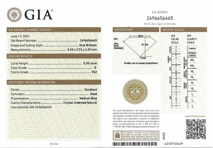 A loose oval shape natural Diamond of 0.30ct (with GIA Summary Report graded as D VS2 #2496656465