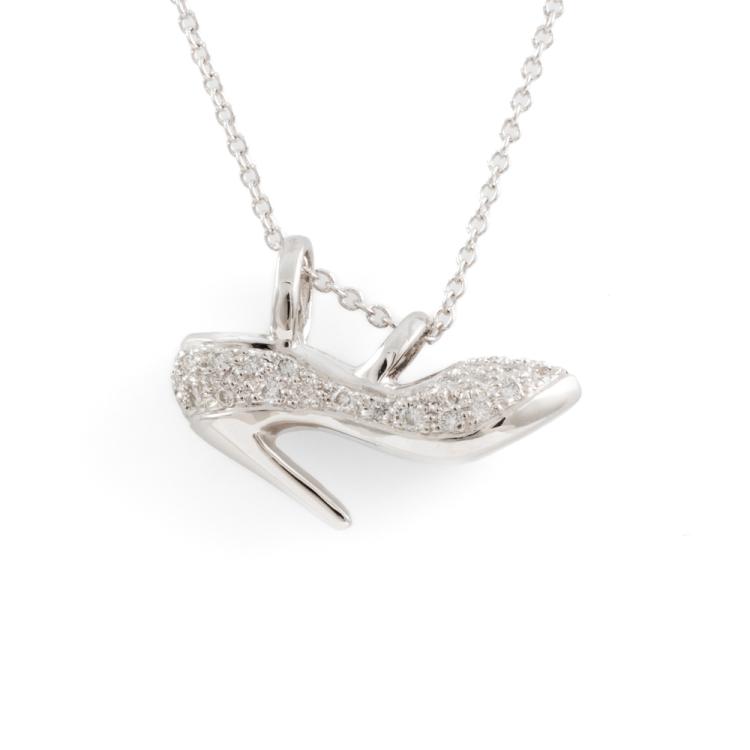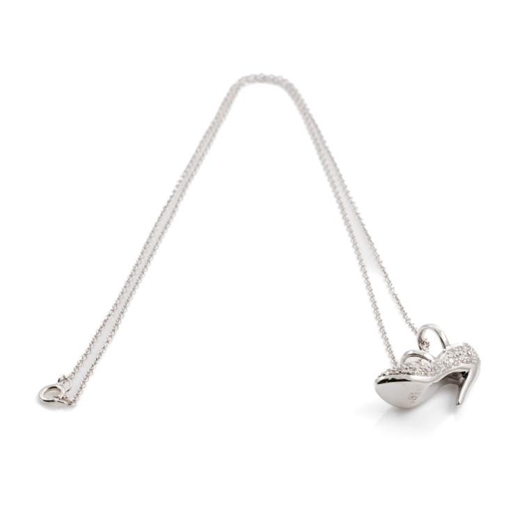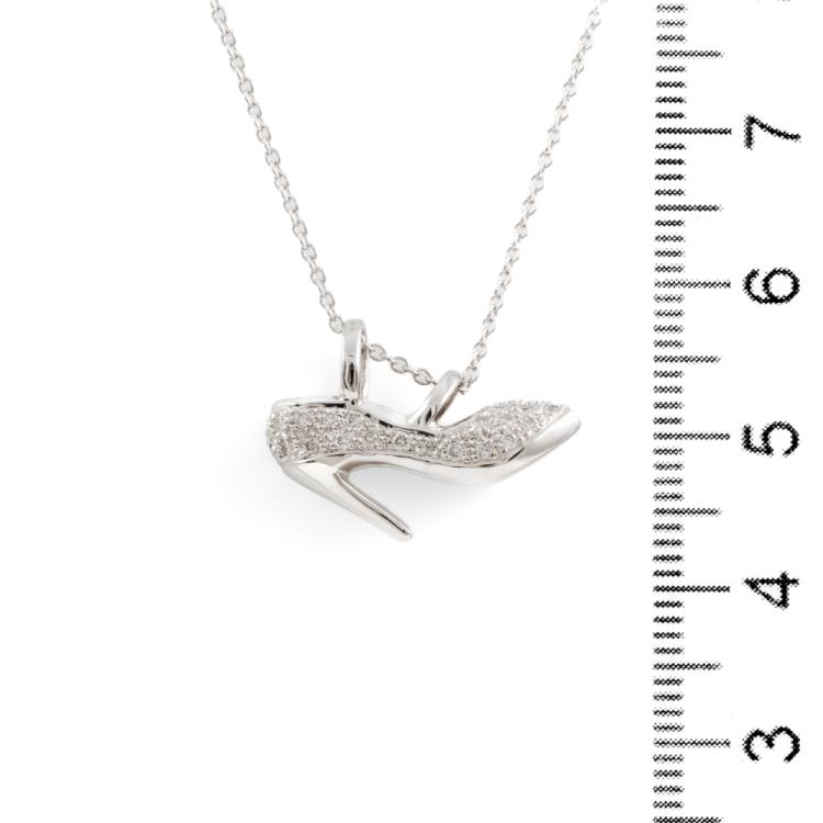 Diamond Heel Motif pendant with round Natural Diamonds totalling 0.35cts (Estimated grading: H SI). 18ct white gold with 14ct white gold 39cm chain. Weight: 4.9g. (Pre-owned)