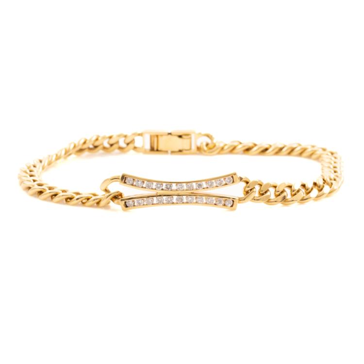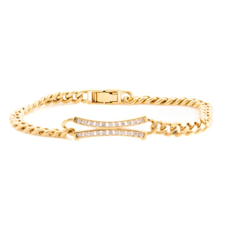 Diamond bracelet with round natural Diamonds totalling 0.46ct (Estimated grading: I-J SI). 18ct yellow gold. Length: 18.5cm. Weight: 18.1g. With Certificate #418691. (Pre-owned)
