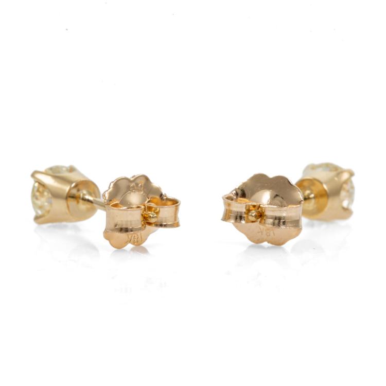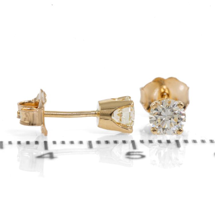 Diamond stud earrings with 2 round Diamonds totalling 0.61cts (Estimated grading: L-M SI). 18ct yellow gold. Weight: 1.1g. (New)