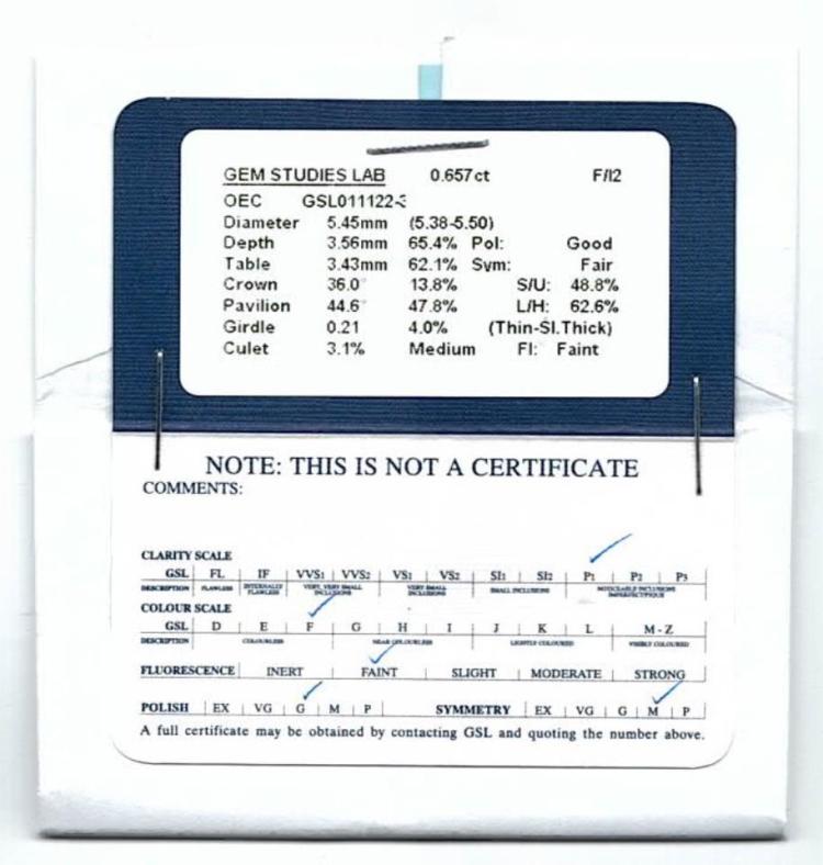 0.65ct Loose Diamond GSL F P2