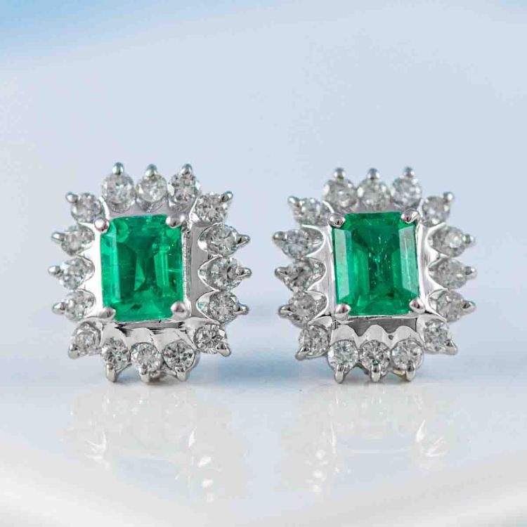 0.76ct Emerald and Diamond Earrings