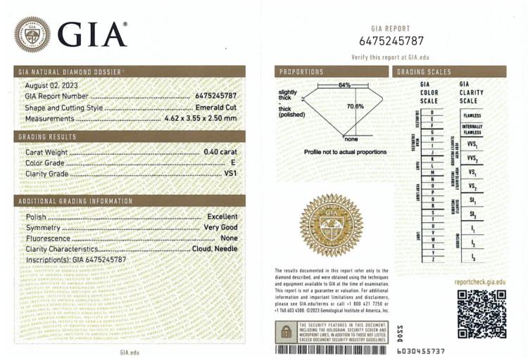 A loose pair of emerald cut natural Diamonds totalling 0.80ct (Both with GIA summary reports graded as E VS1 and F VS1 #6475245787, 5463221804