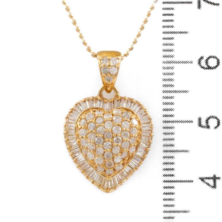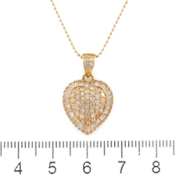 Diamond heart pendant with baguette cut & round Natural Diamonds totalling 1.00ct (Estimated grading: H-