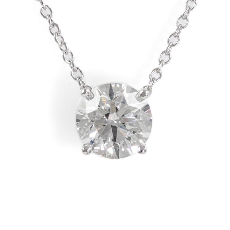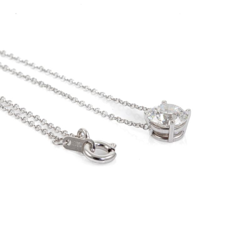 Diamond solitaire pendant with round brilliant cut Natural Diamond of 1.00ct (with GIA Report graded as D SI1 #2477736782). 18ct white gold with 18ct white gold attached chain. Length: 41cm. Weight: 1.7g. (New)