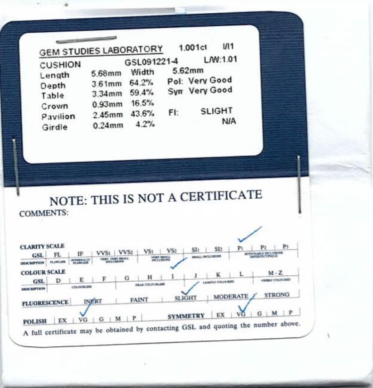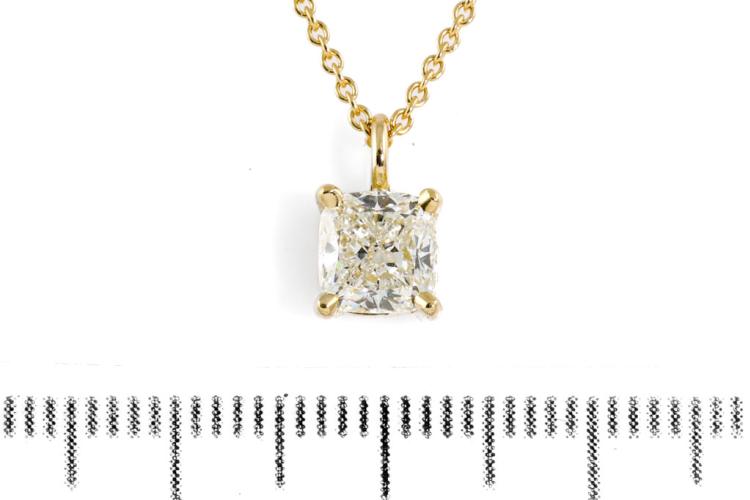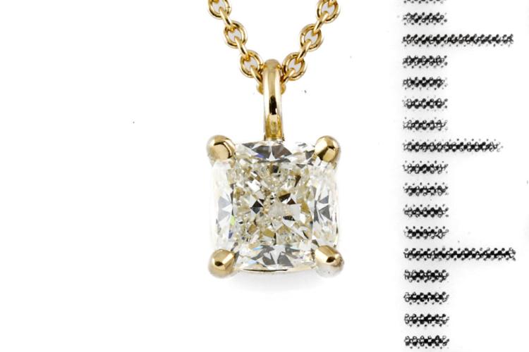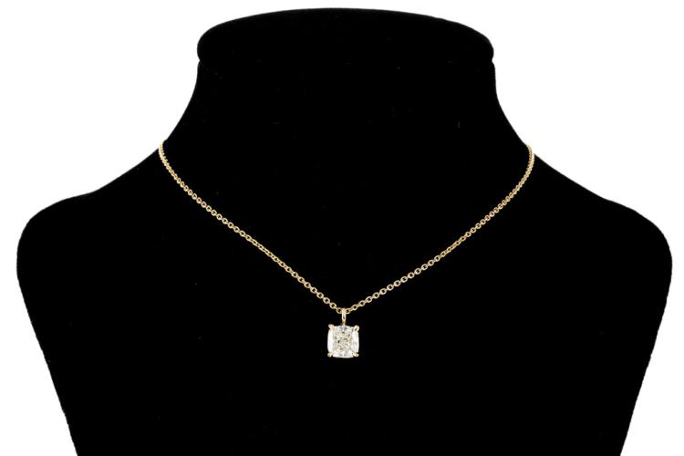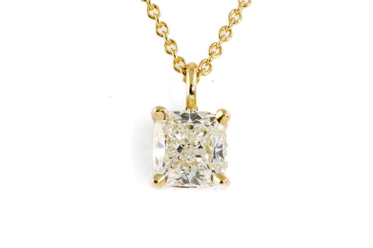 Diamond pendant with cushion cut Natural Diamond of 1.00ct (With GSL memo graded as I P1 #GSL091221-4) 18ct yellow gold with 42cm chain. Weight 3.2g. (New)