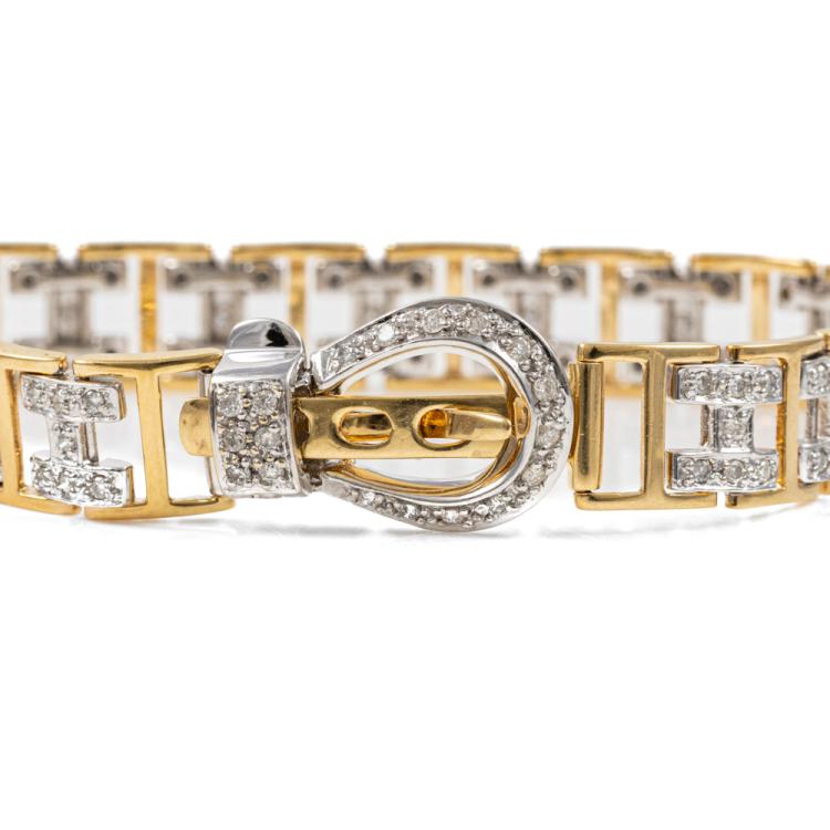 Diamond bracelet with round Natural Diamonds totalling 1.10cts (Estimated grading: H-I SI). 18ct yellow and white gold. Length: 19.0cm. Weight: 21.8g. With Valuation Certificate #418525. (Pre-owned)