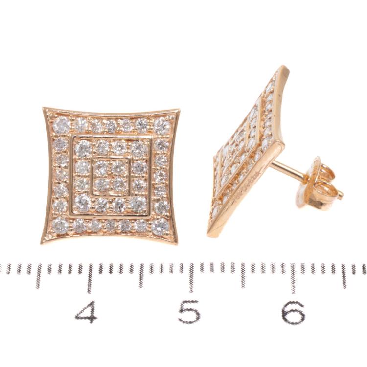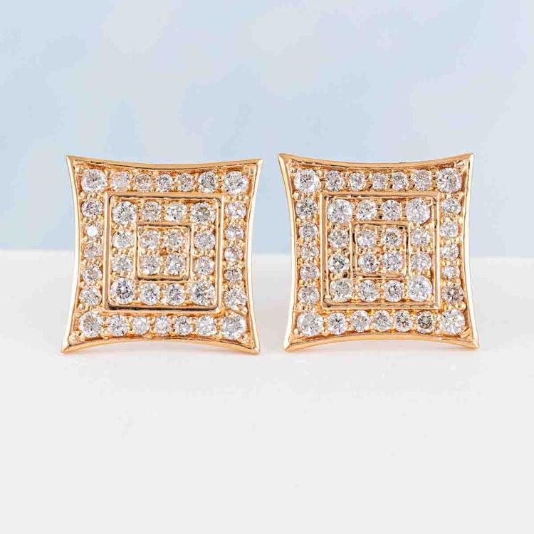 Diamond dress earrings with round natural Diamonds totalling 1.10ct (Estimated grading: H-I SI). 18ct rose gold. Weight: 4.5g. (Pre-owned)
