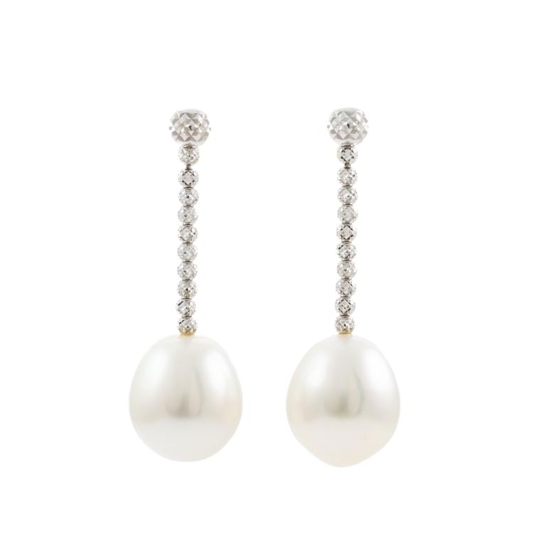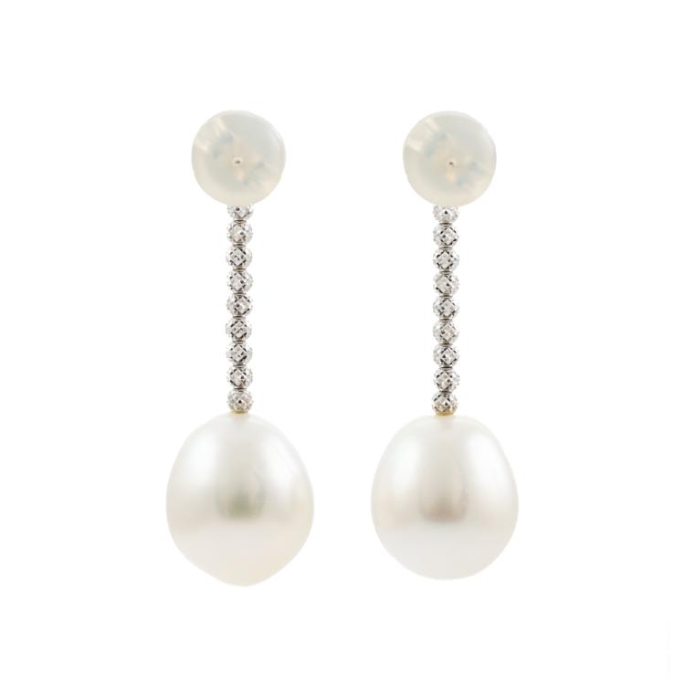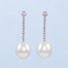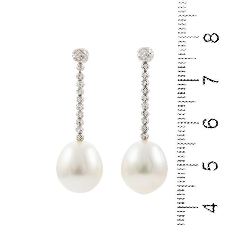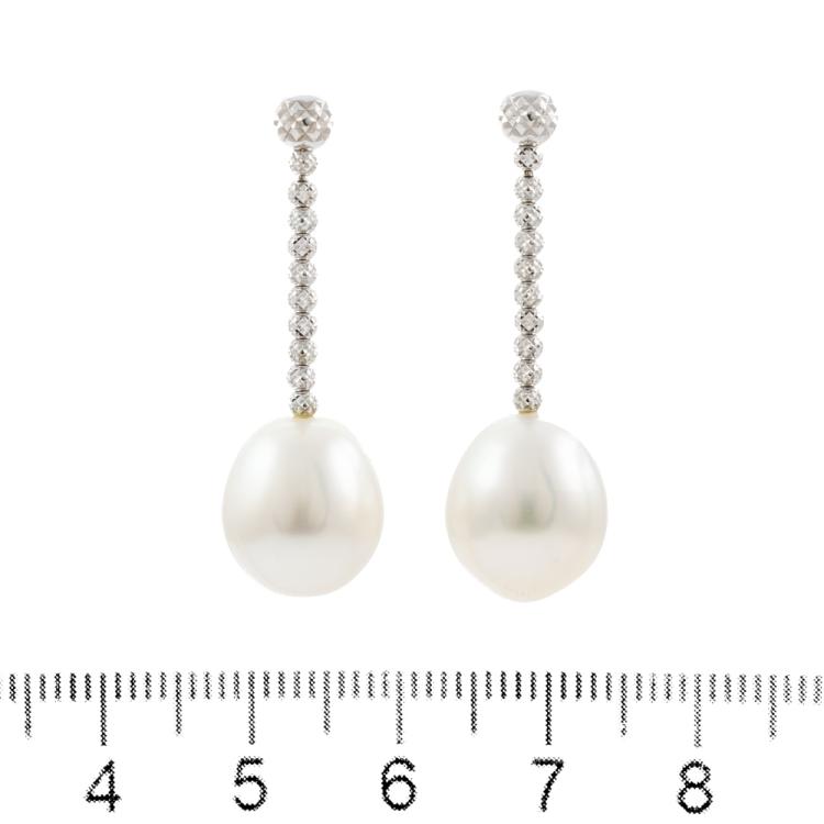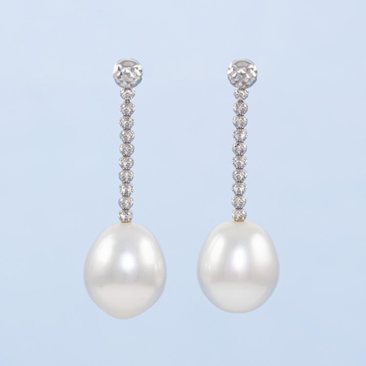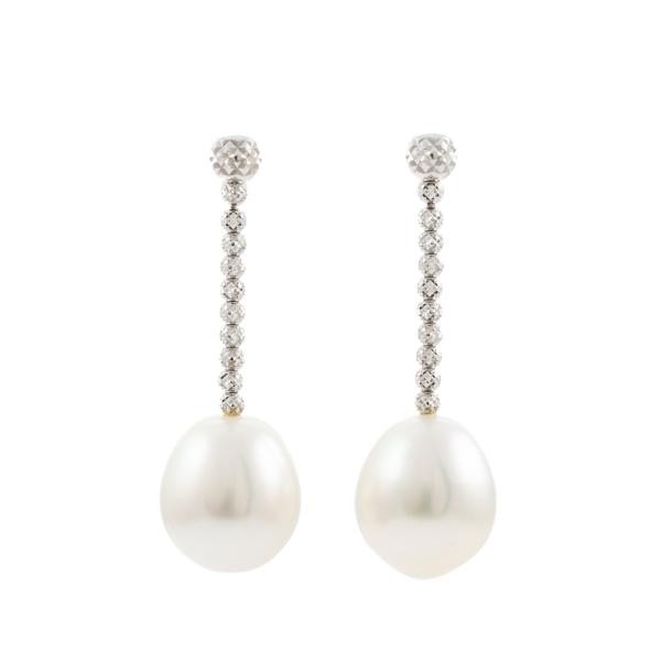 Pearl Earrings with drop shape South Sea Pearls of 11.0mm. 18ct white gold with silicon & 18ct white gold backs. Weight: 5.7g. (Pre-owned)