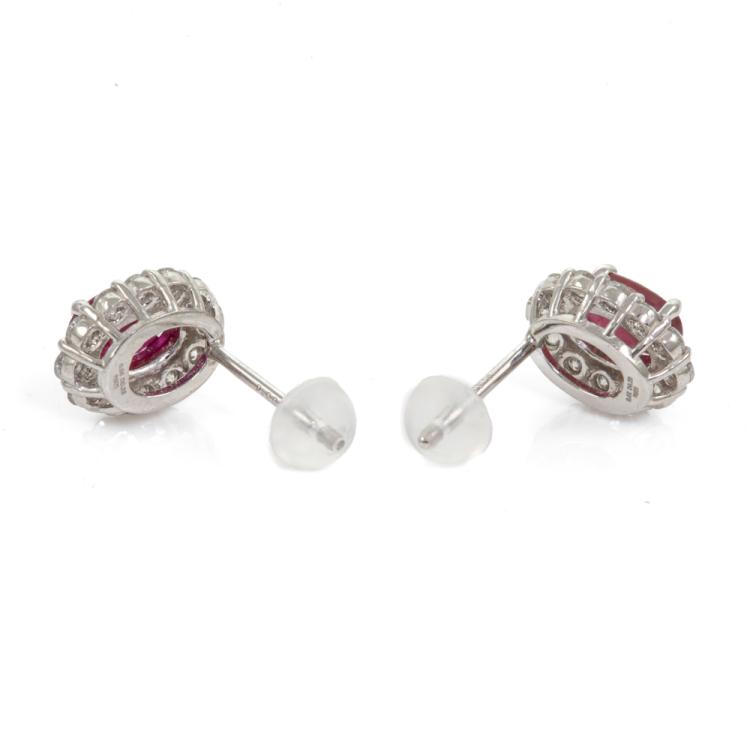 Ruby and Diamond earrings with oval shape natural Rubies totalling 1.18cts and round natural Diamonds totalling 0.56cts (Estimated grading: G-H SI-P2). Platinum 900 with silicon backs. Weight: 2.7g. (Pre-owned)