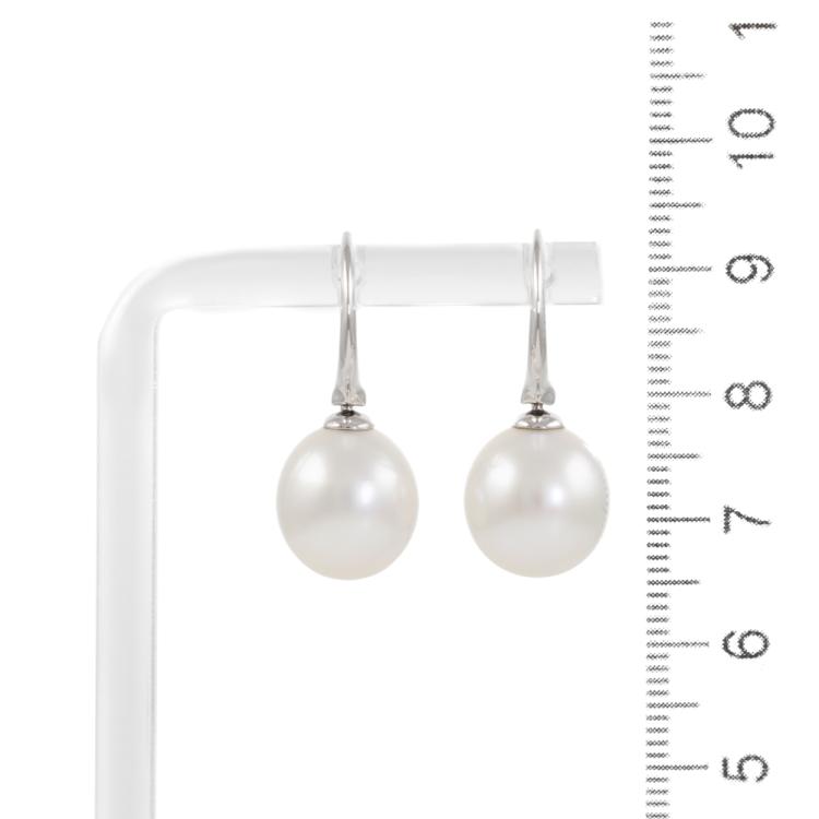 Paspaley shepherds hook drop earrings with oval shape Australian South Sea pearls of 11mm. Length of earrings: 2.5cm. 18ct white gold. Weight: 6.5g. With Paspaley Certificate of Authenticity dated 13/11/18. With Paspaley pouch and box. (Pre-owned)