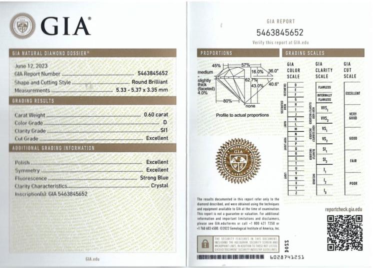 Diamond stud earrings with 2 round brilliant cut Natural Diamonds totalling 1.20cts (with GIA Summary Reports graded as D SI1 #6475122019, 5463845652). 18ct yellow gold. Weight: 1.2g. (New)