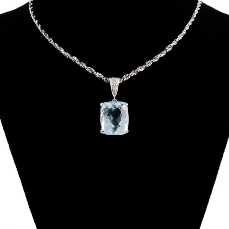 12.91ct Aquamarine & Diamond Pendant