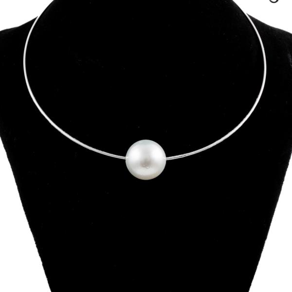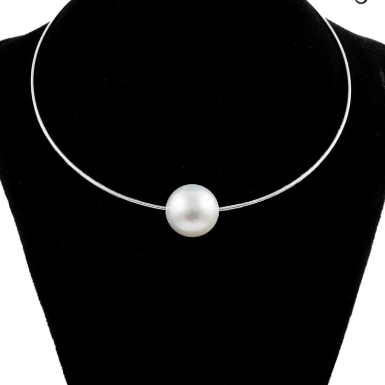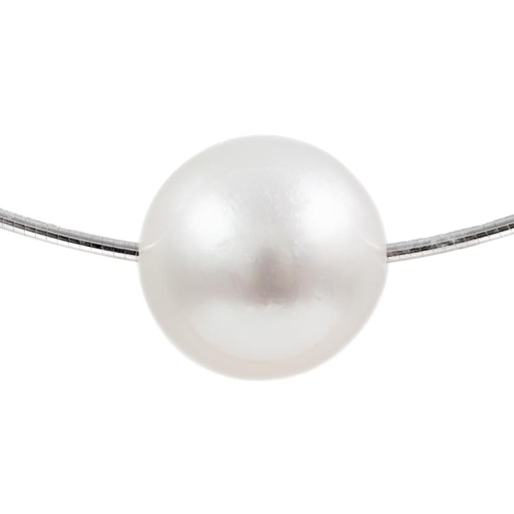 Pearl necklet with South Sea Pearl of 14.0mm. 18ct white gold chain. Length: 42cm. Weight: 9.0g (As New)