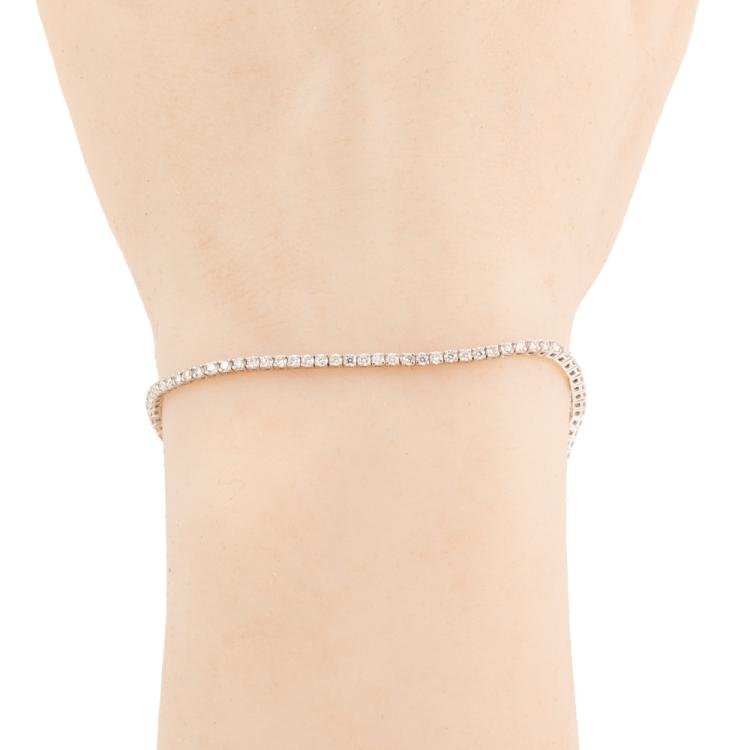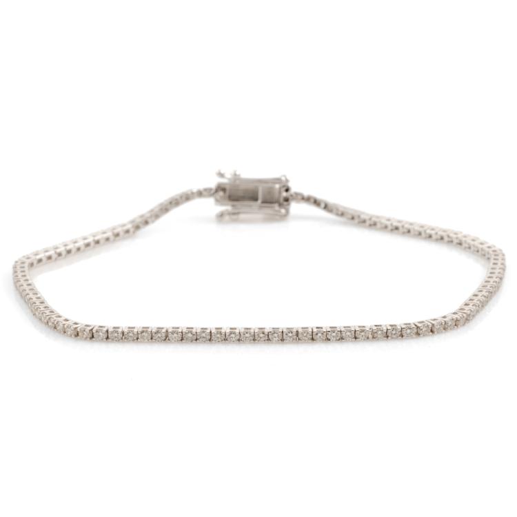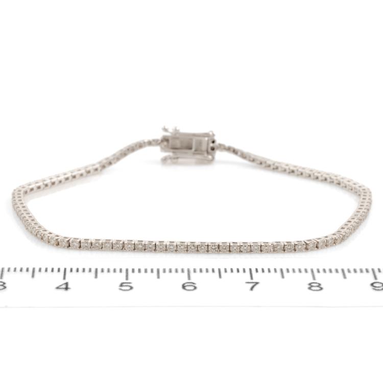 Diamond tennis bracelet with 99 round Natural Diamonds totalling 1.49cts (Estimated grading: IJK SI). 14ct white gold. Length: 18cm. Weight: 4.6g. (New)