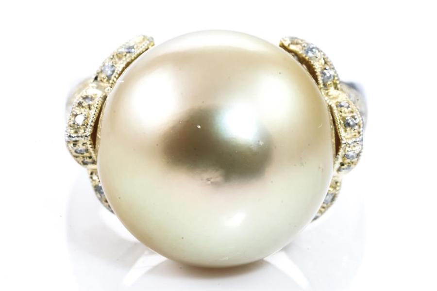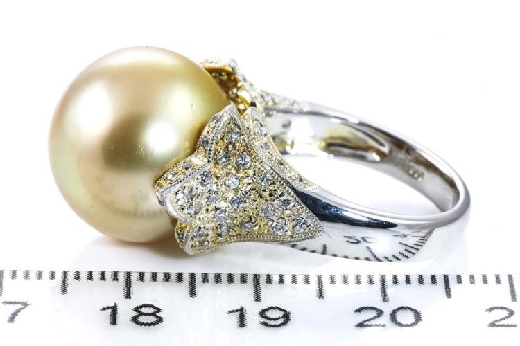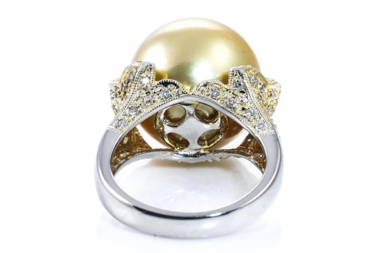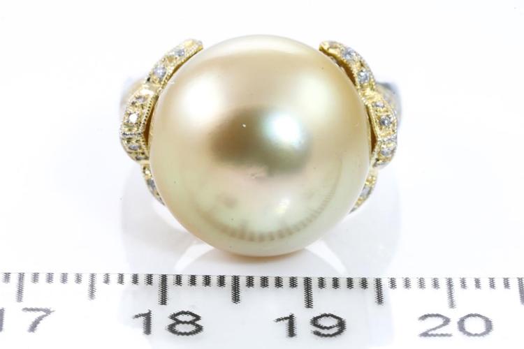 14mm Golden South Sea Pearl & Diamond Ring