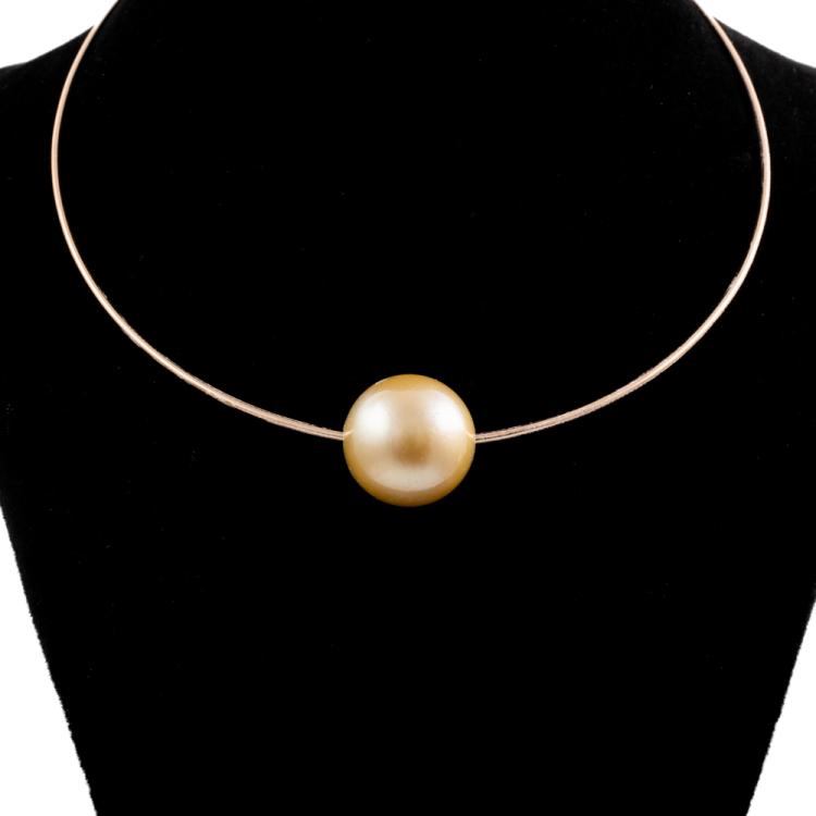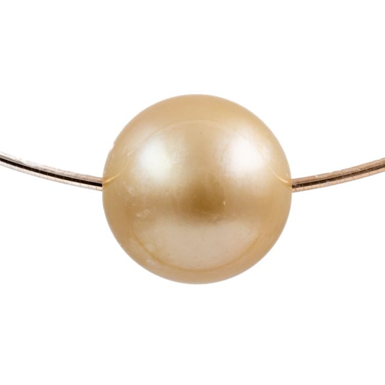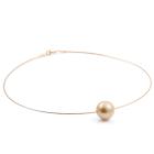 Pearl necklet with a Golden South Sea Pearl of 15.1mm. 18ct rose gold chain. Length: 42cm. Weight: 9.8g. (As New)